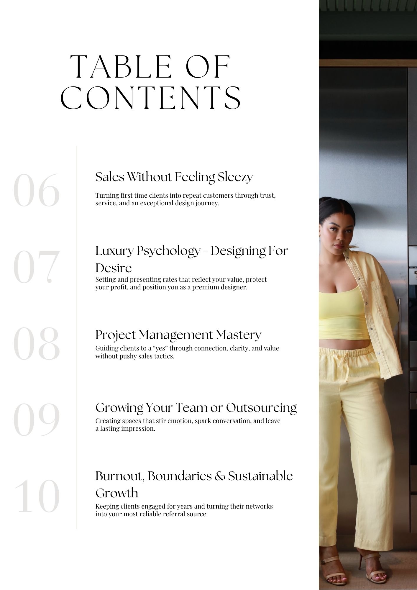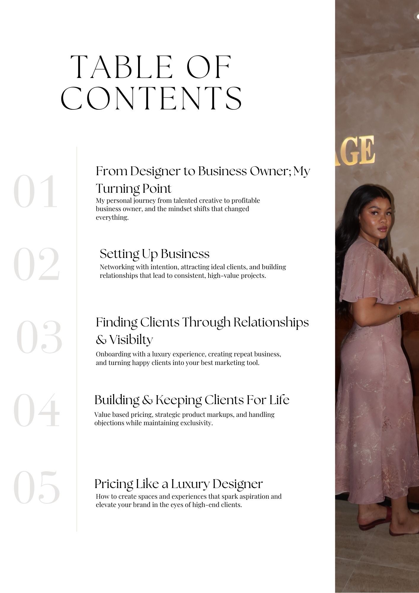 This isn’t theory, it’s a proven roadmap for designers who want more than creativity. You’ll walk away with clarity, structure, and tools that position you as a high-value professional, not “just a decorator.”