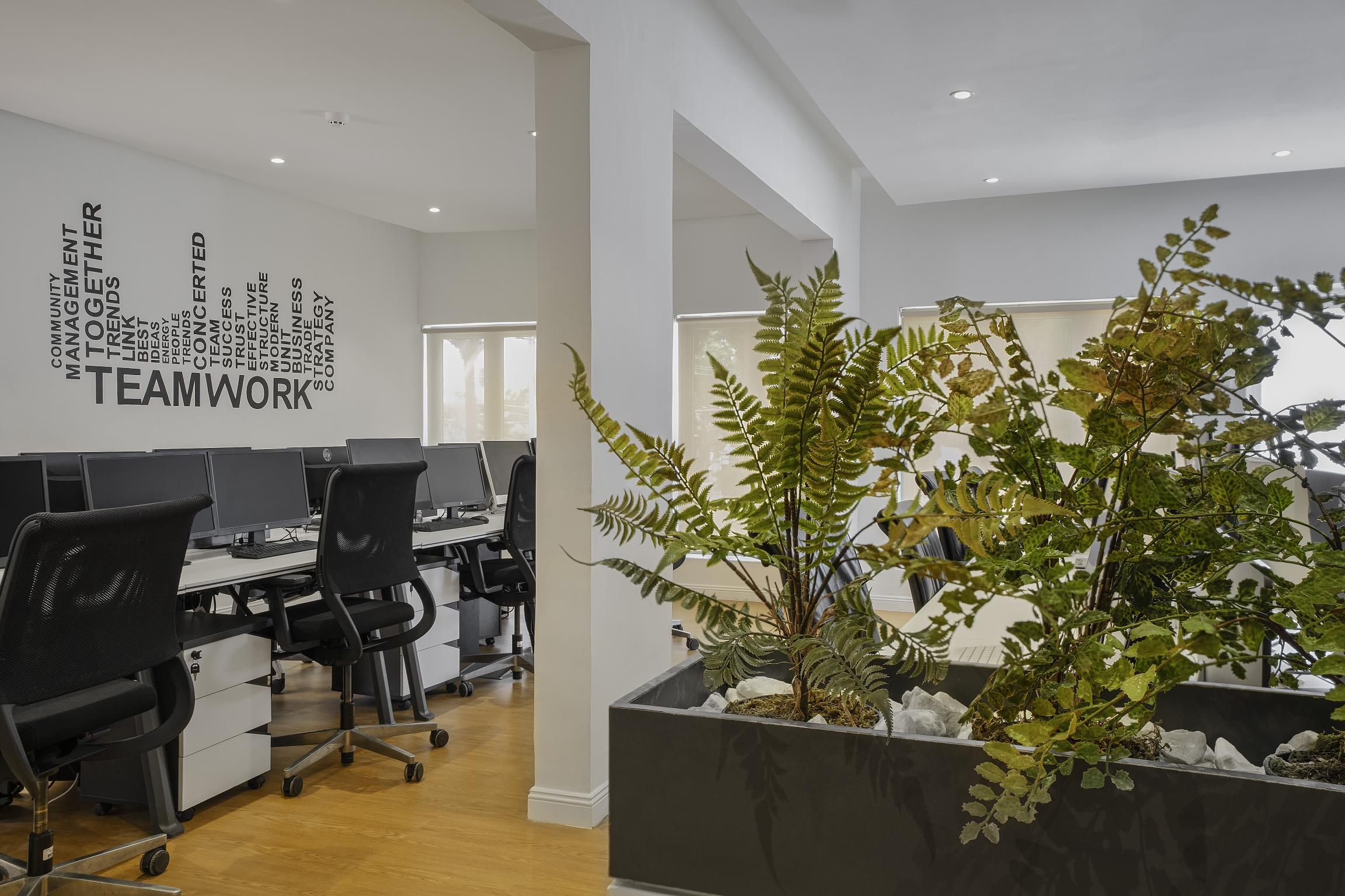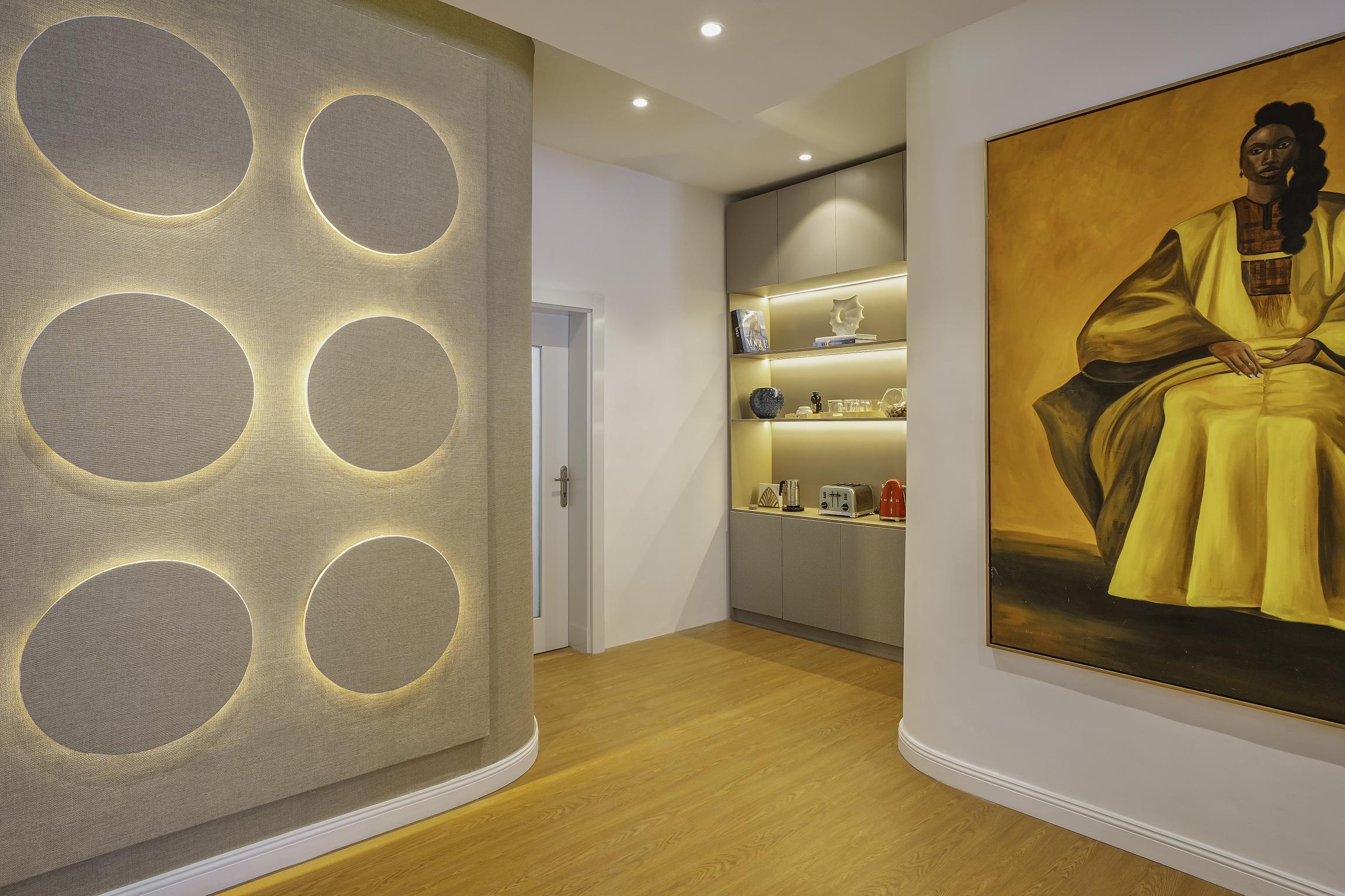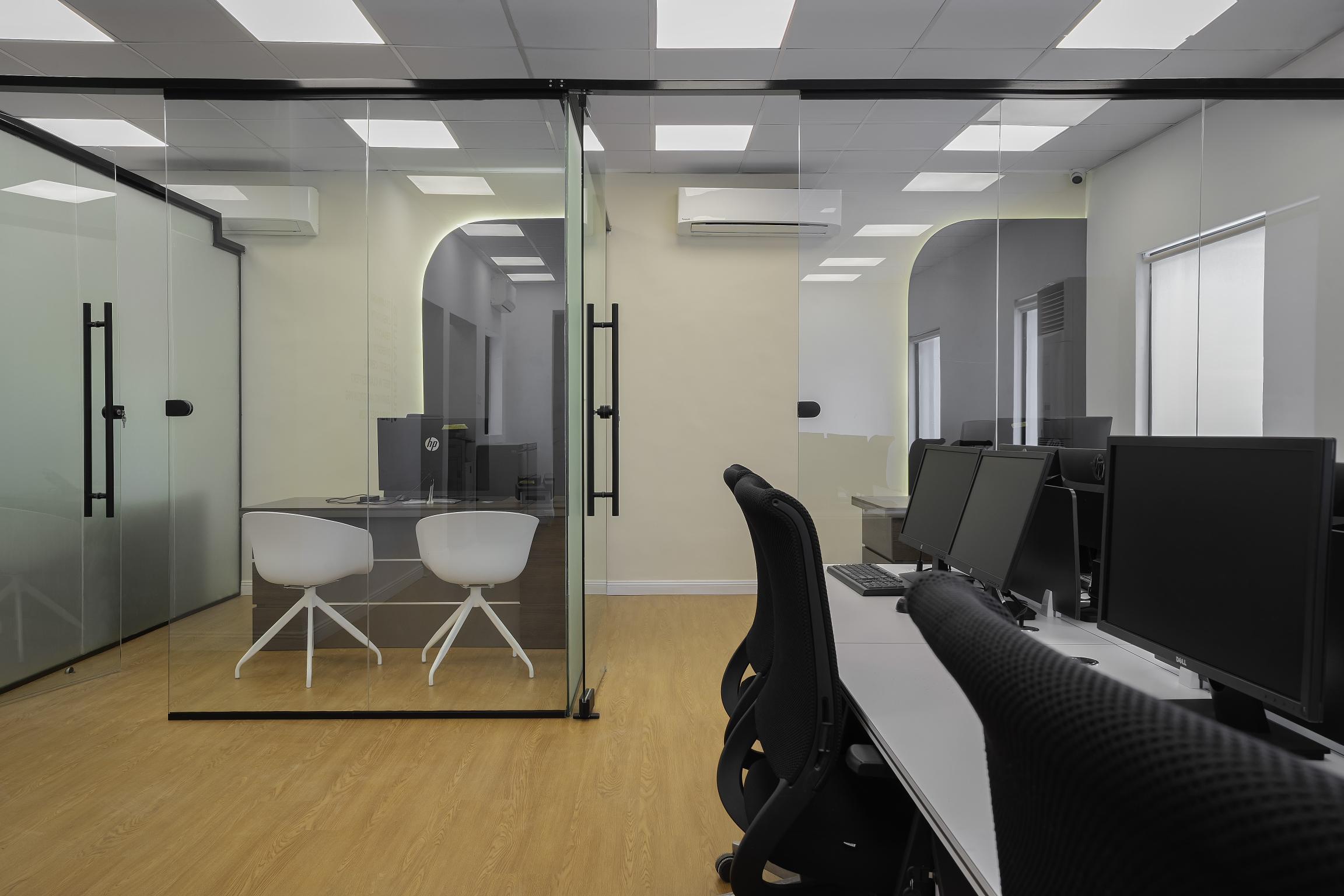 Each area is planned for clarity and ease, with clean lines, muted tones and strategic lighting that support focus and productivity. Art, greenery and soft furnishings introduce a calming balance to the precision of the workspace.